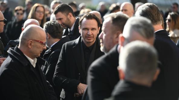 Glumac je stigao odjeven u crnu košulju i kaput iste boje. Njegov izraz lica odavao je veliku patnju za pokojnim Ćirom.