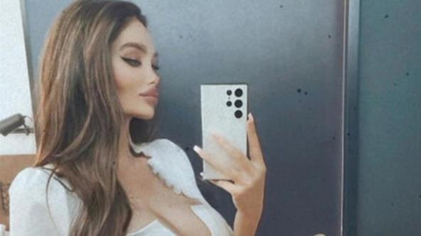 U dugačkoj suknji i kratkoj majici, ona je pozirala ispred ogledala u jednom hotelu i zabilježila trenutak kako mazi trudnički trbuh.